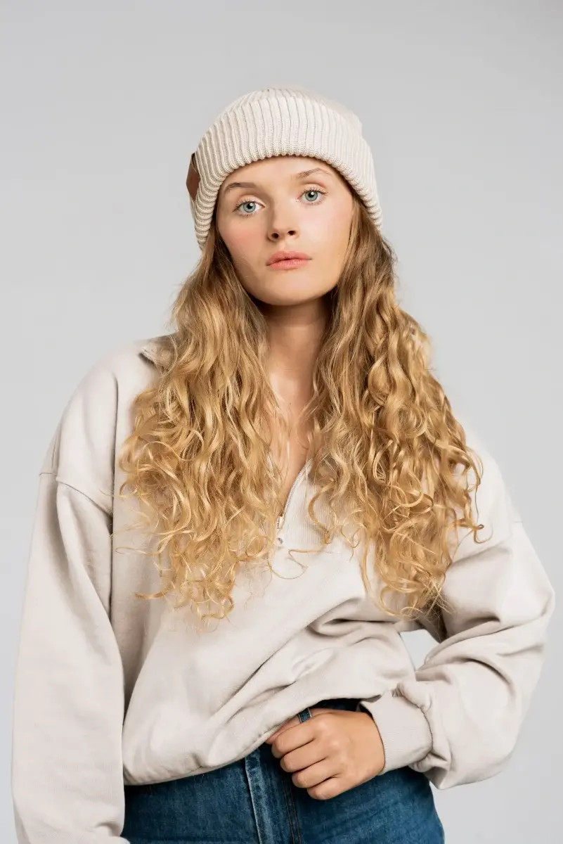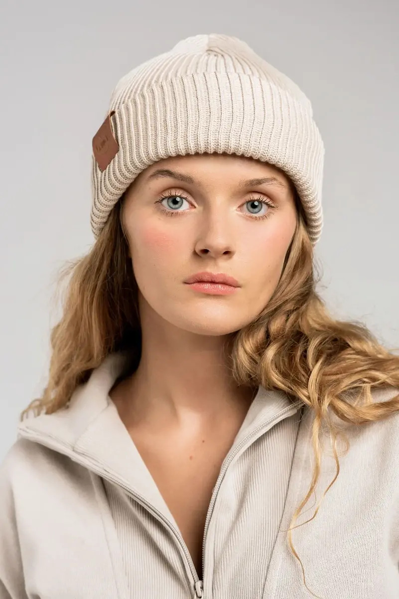 Beige organic cotton winter beanie