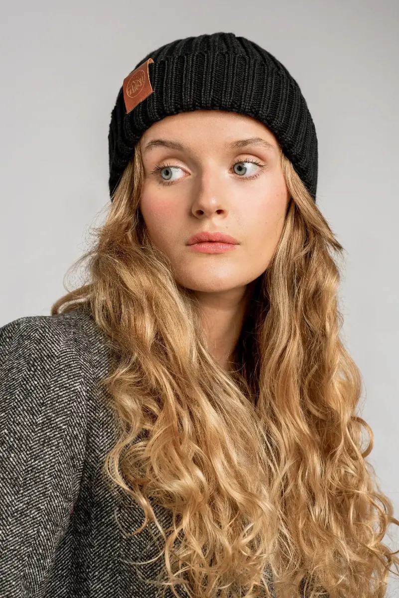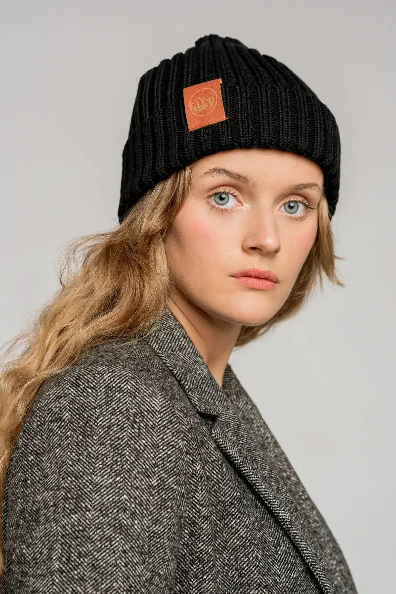 Black organic cotton alkatraz beanie
