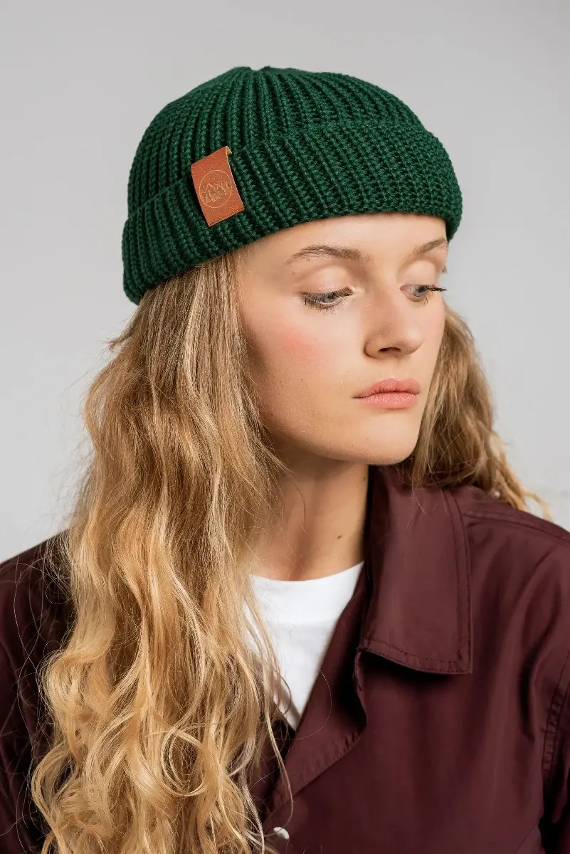 Bottle green organic cotton burglar beanie