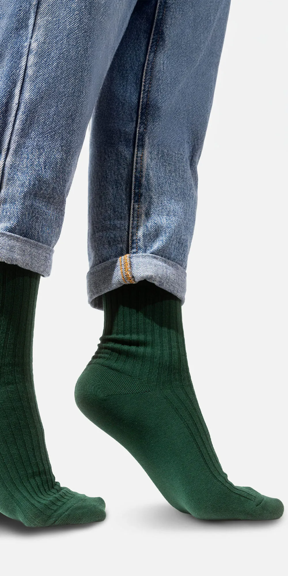 Bottle green socks made of organic cotton with wide stripes