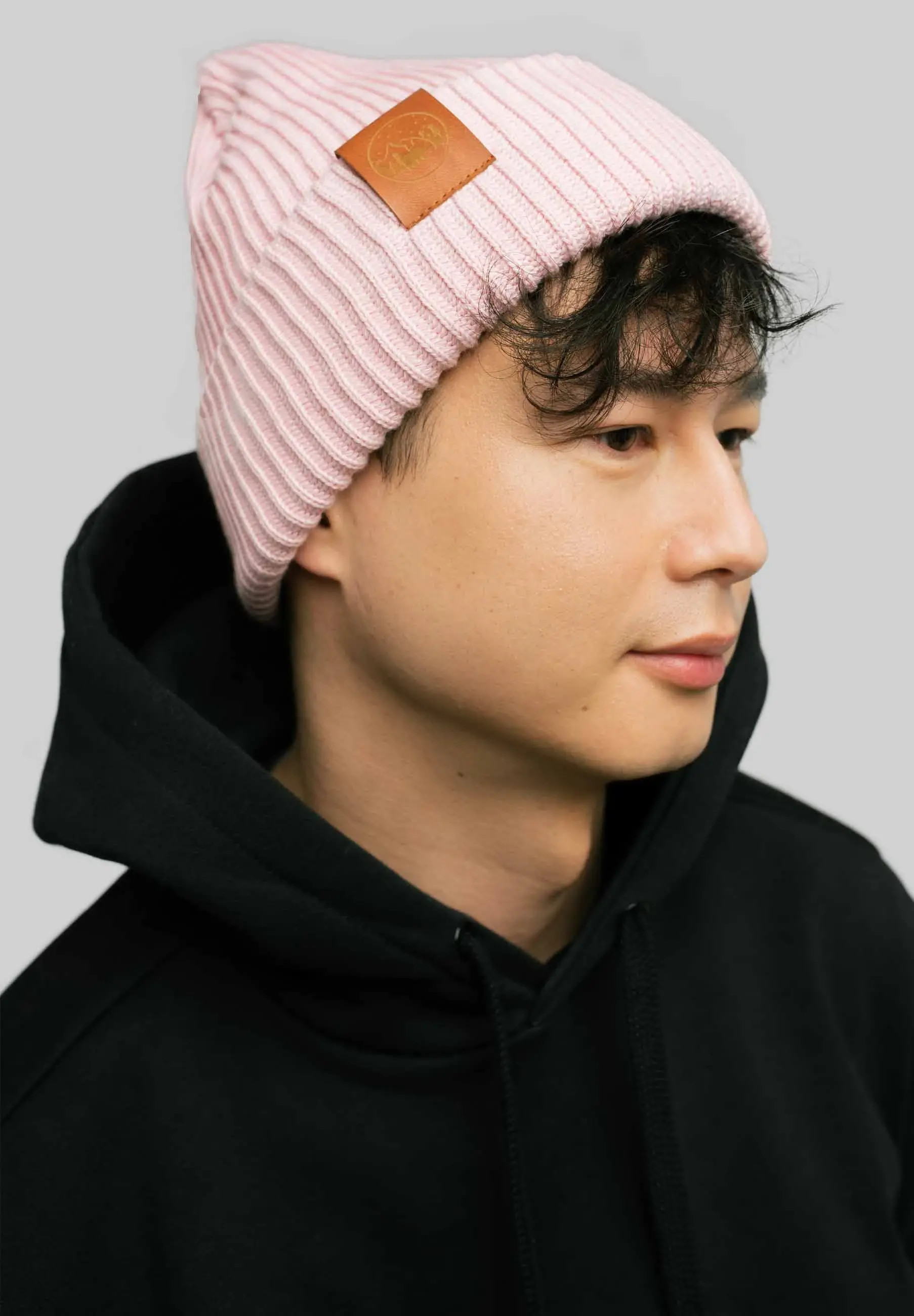 Light pink organic cotton winter beanie