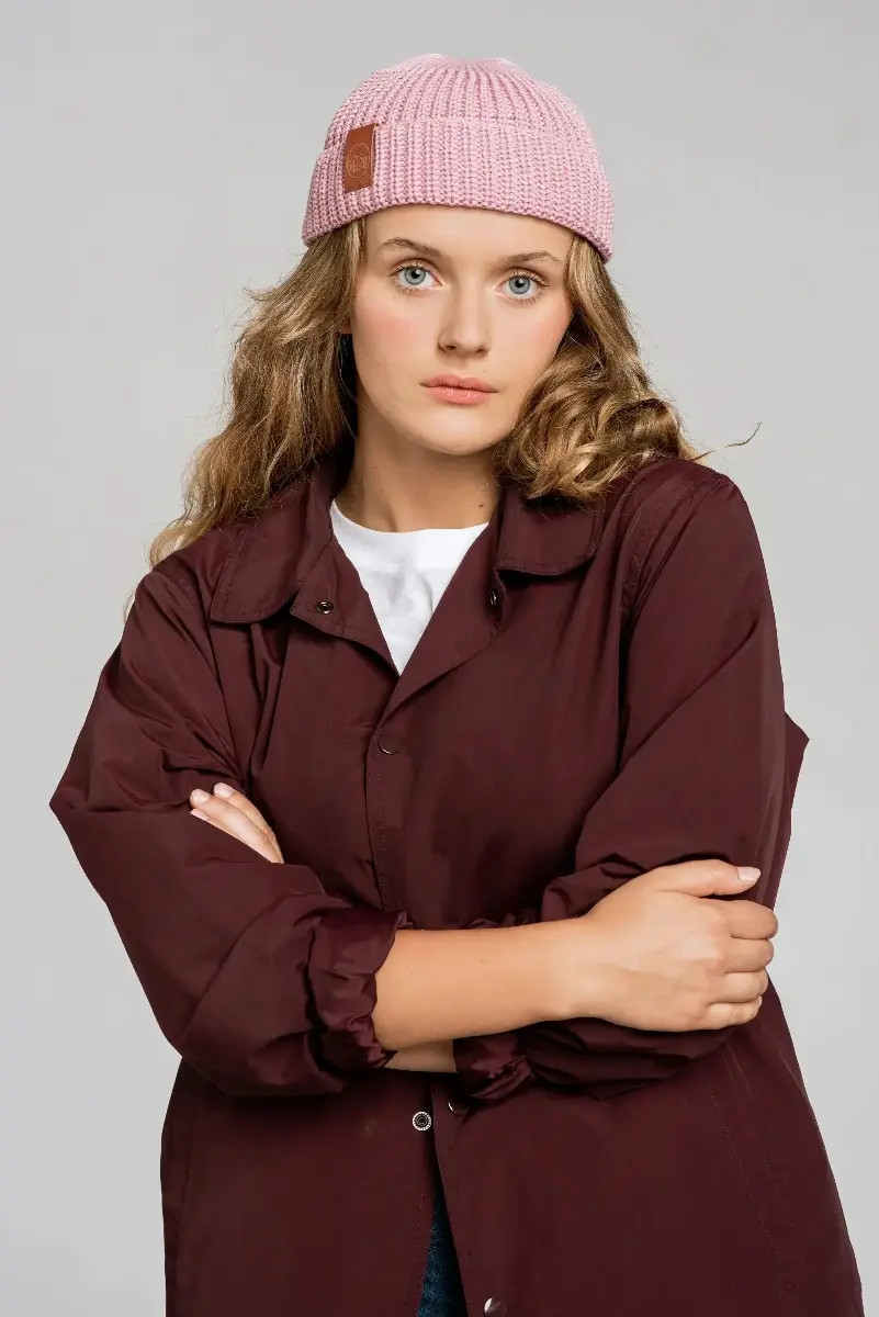 Powder pink organic cotton burglar beanie