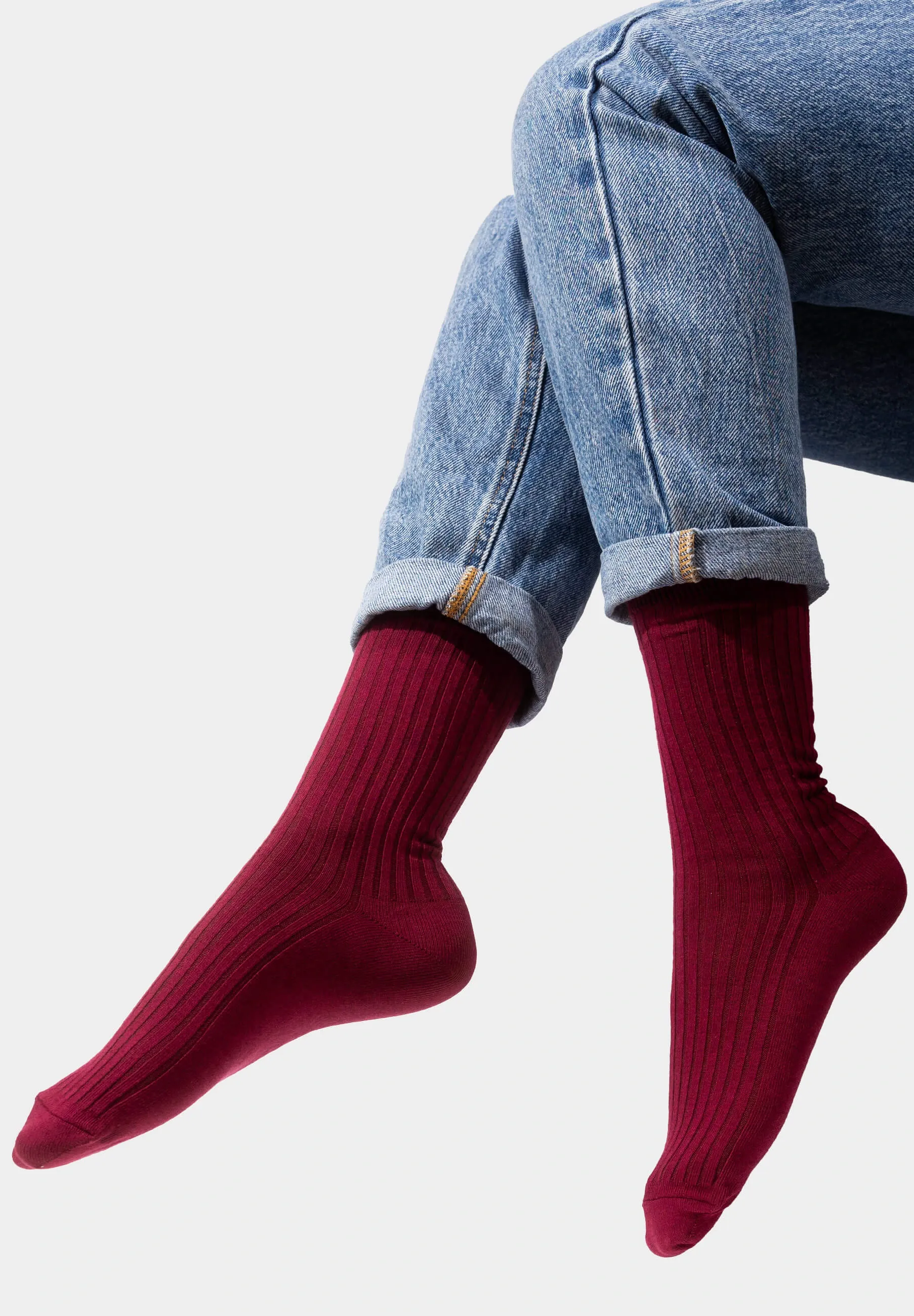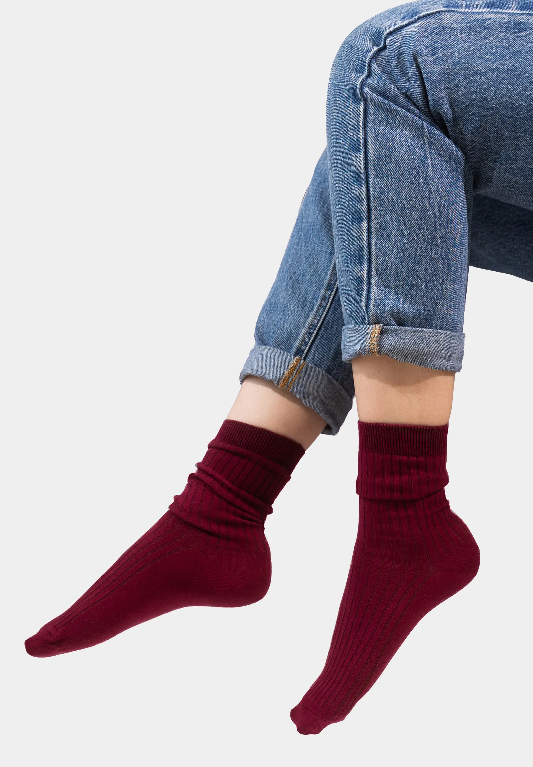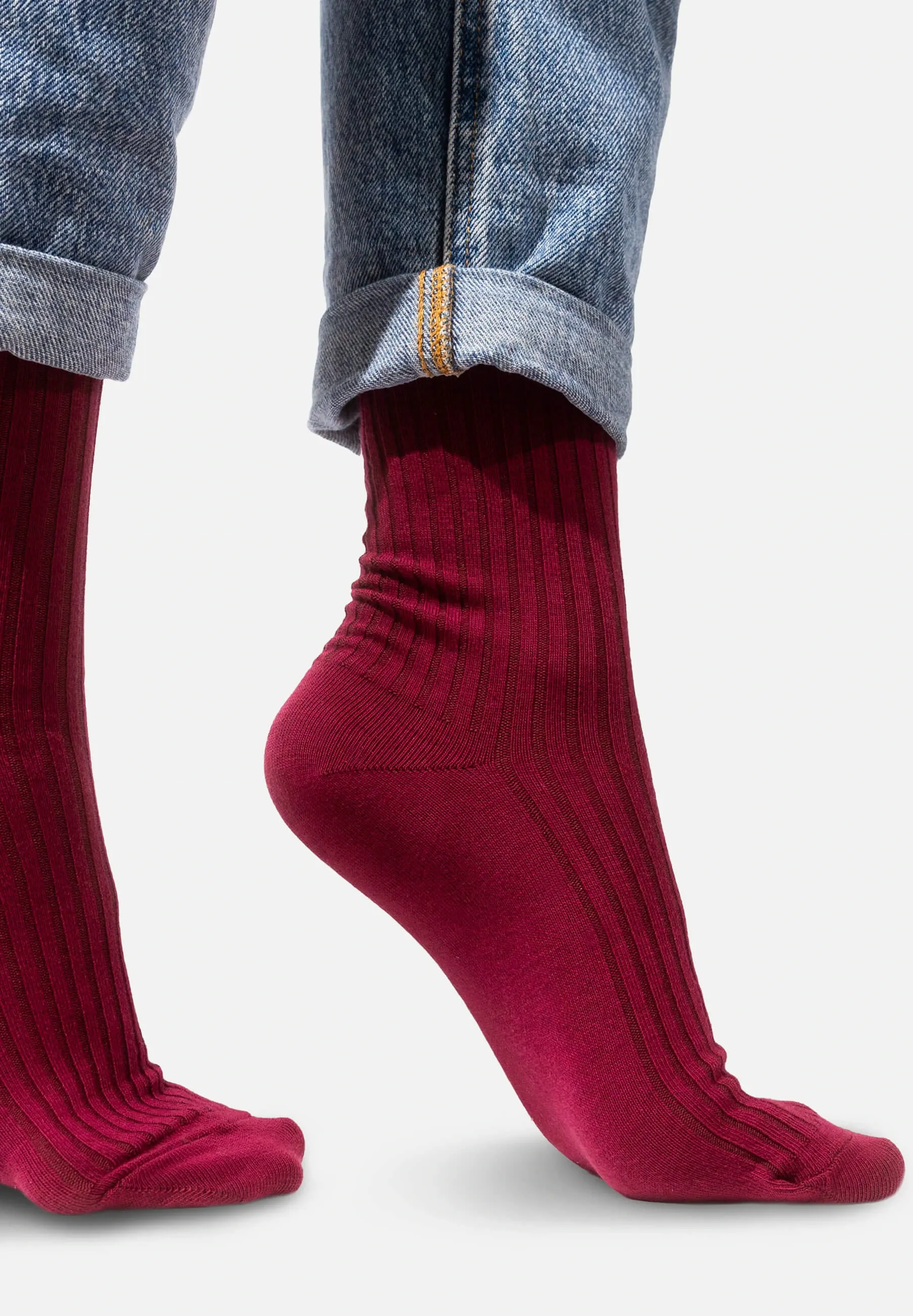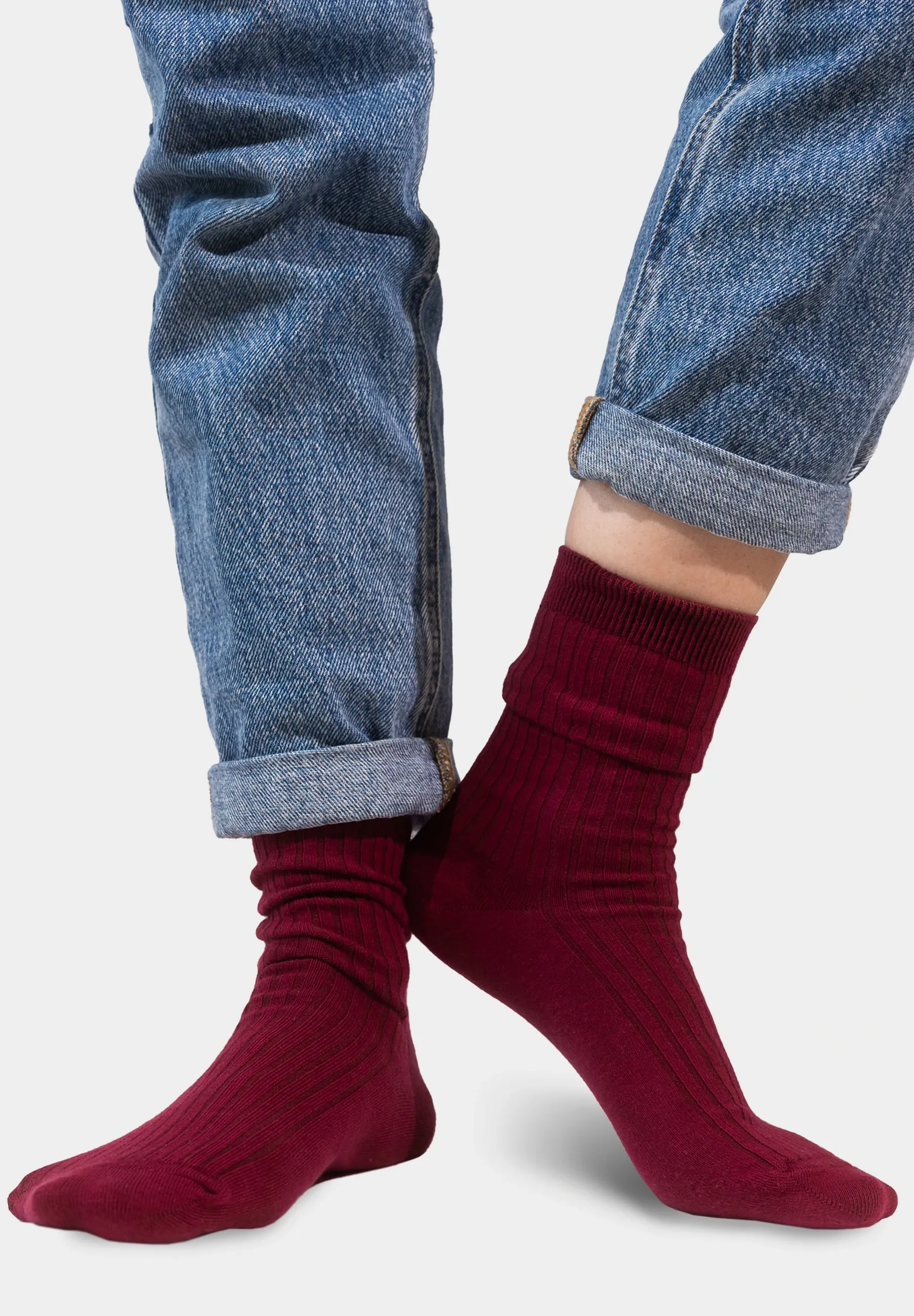 Set of burgundy organic cotton wide rib socks