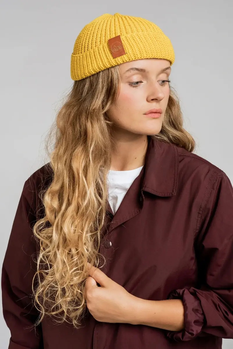 Yellow organic cotton burglar beanie