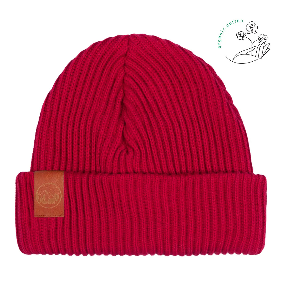 Czapka dziecięca zimowa z bawełny organicznej malinowa
