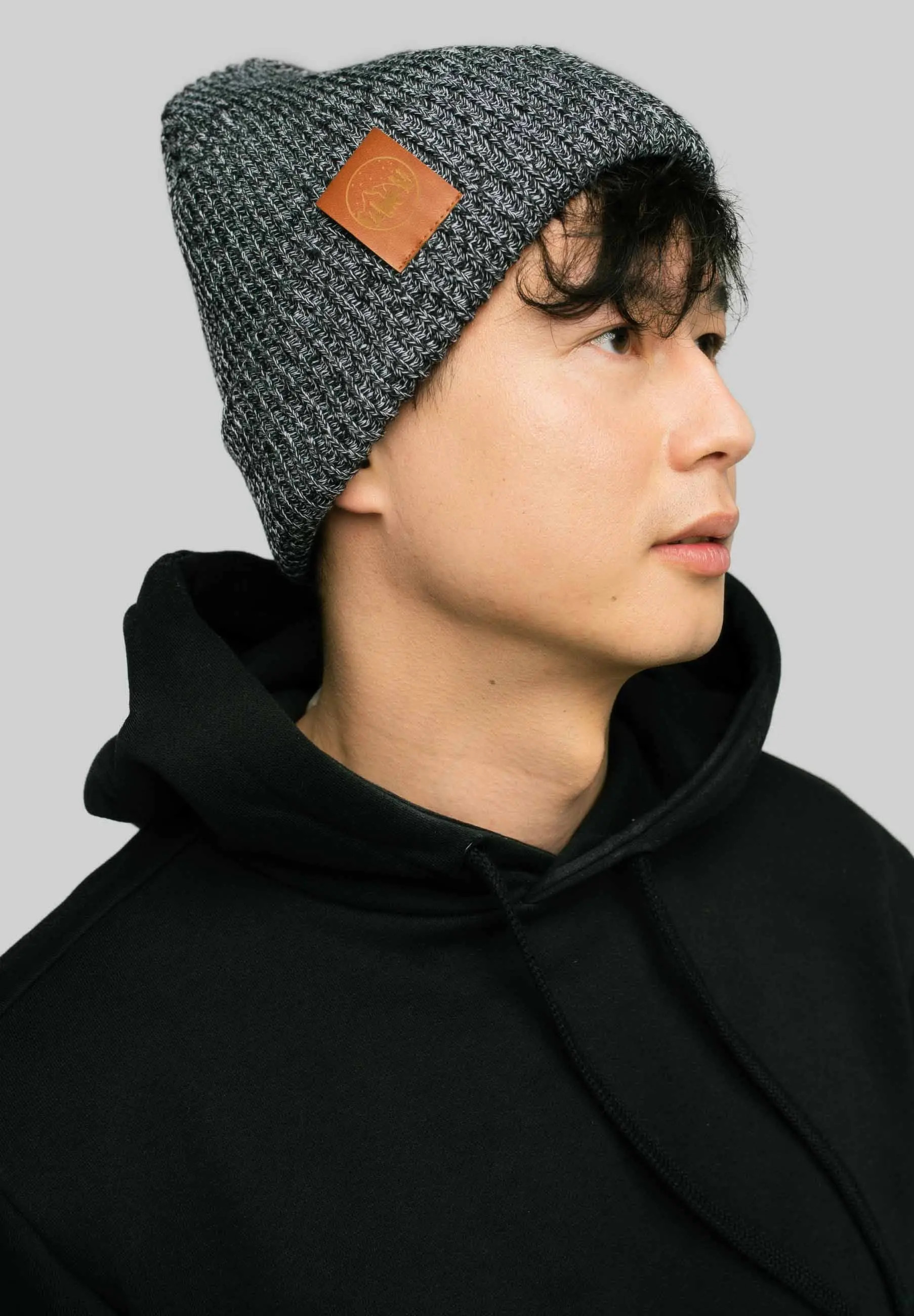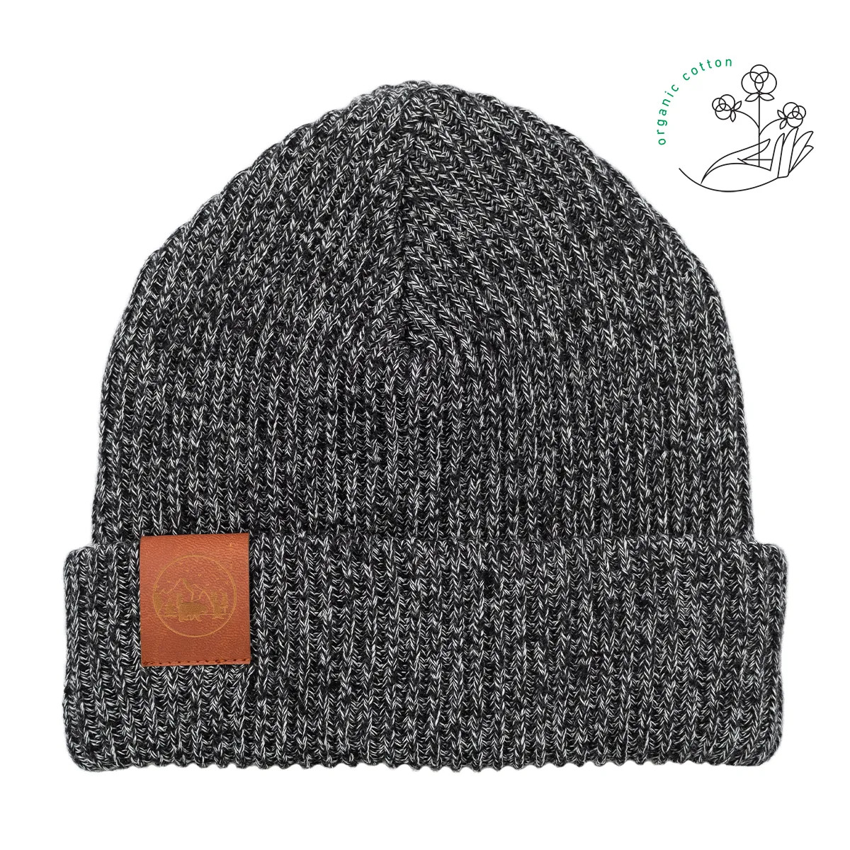 Czapka zimowa z bawełny organicznej czarno-biały melanż