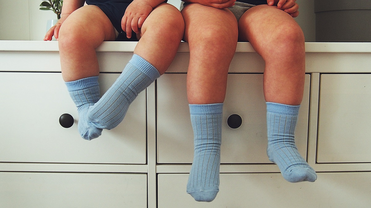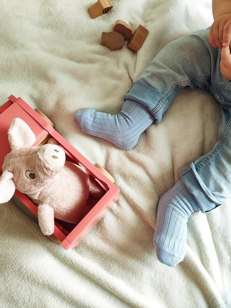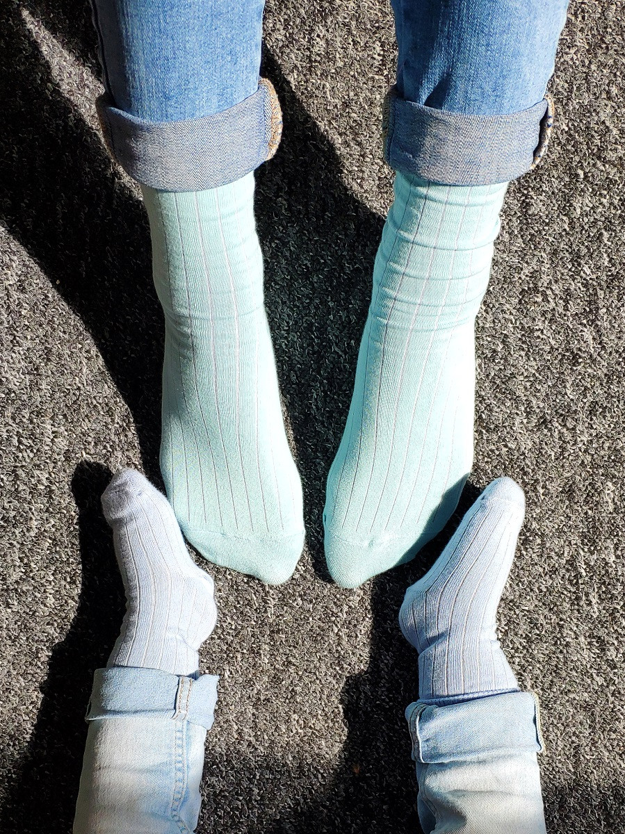 Skarpetki dziecięce błękitne w fioletowy prążek