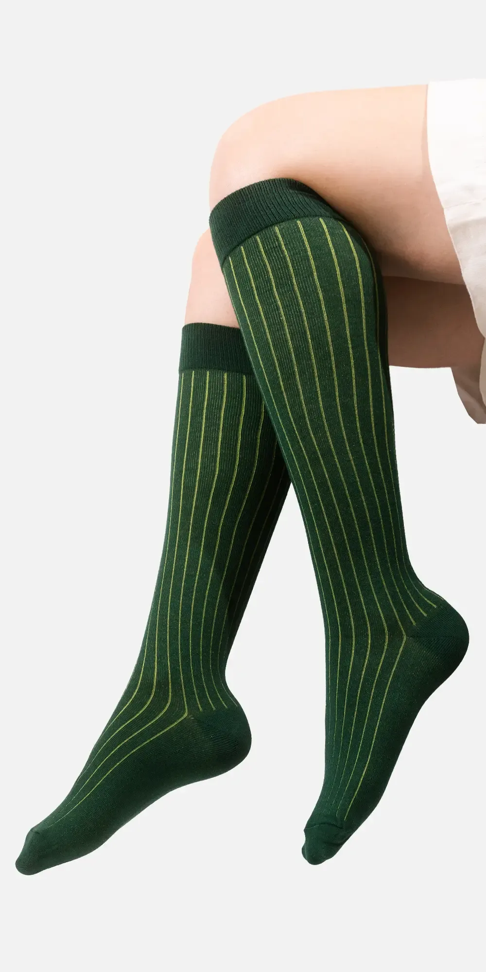 Skarpetki podkolanówki z bawełny organicznej zieleń butelkowa w zielony prążek