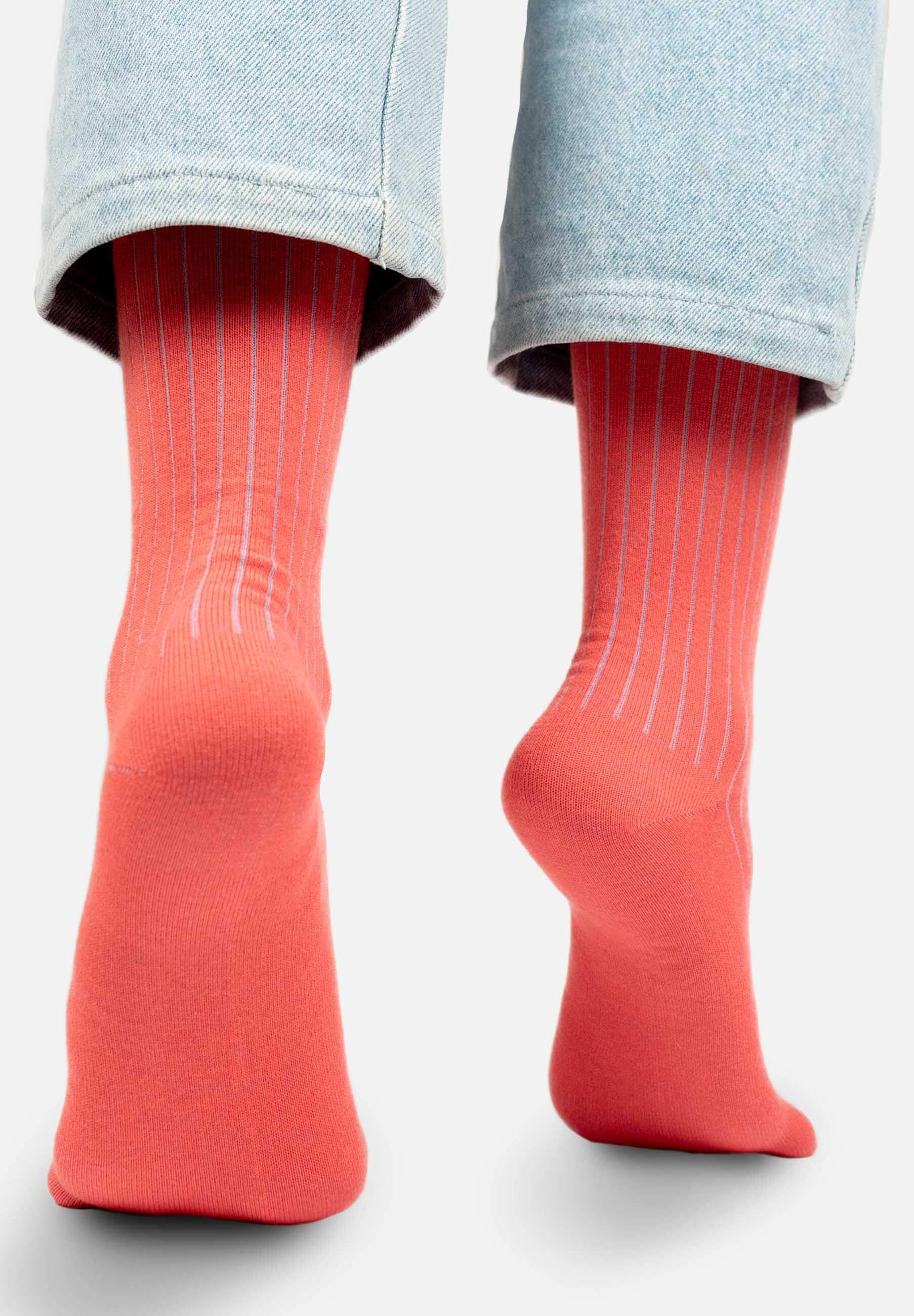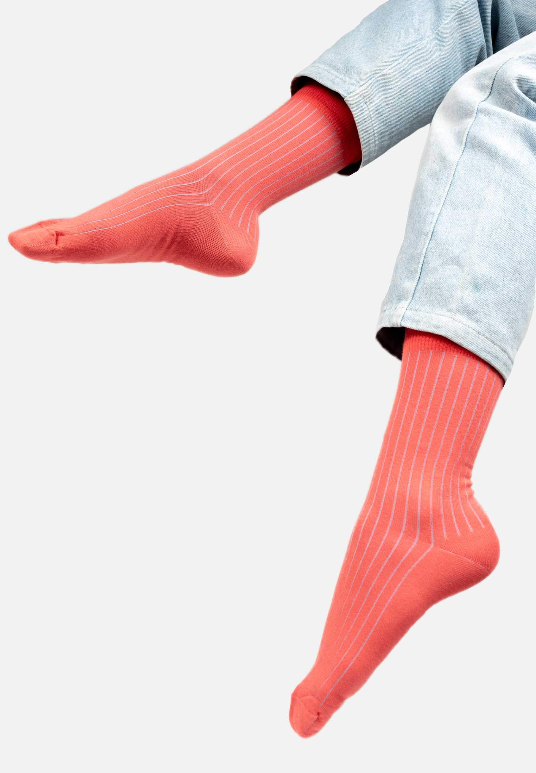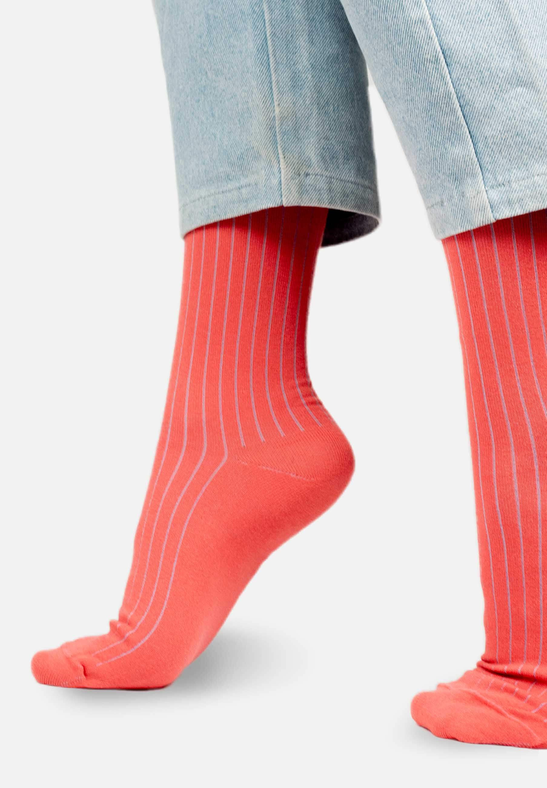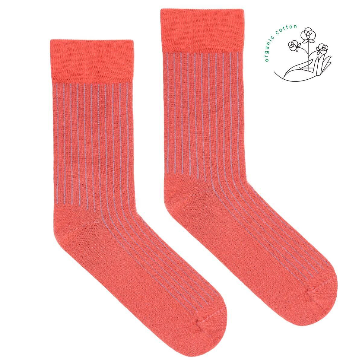 Skarpetki z bawełny organicznej jasny koral w niebieski prążek
