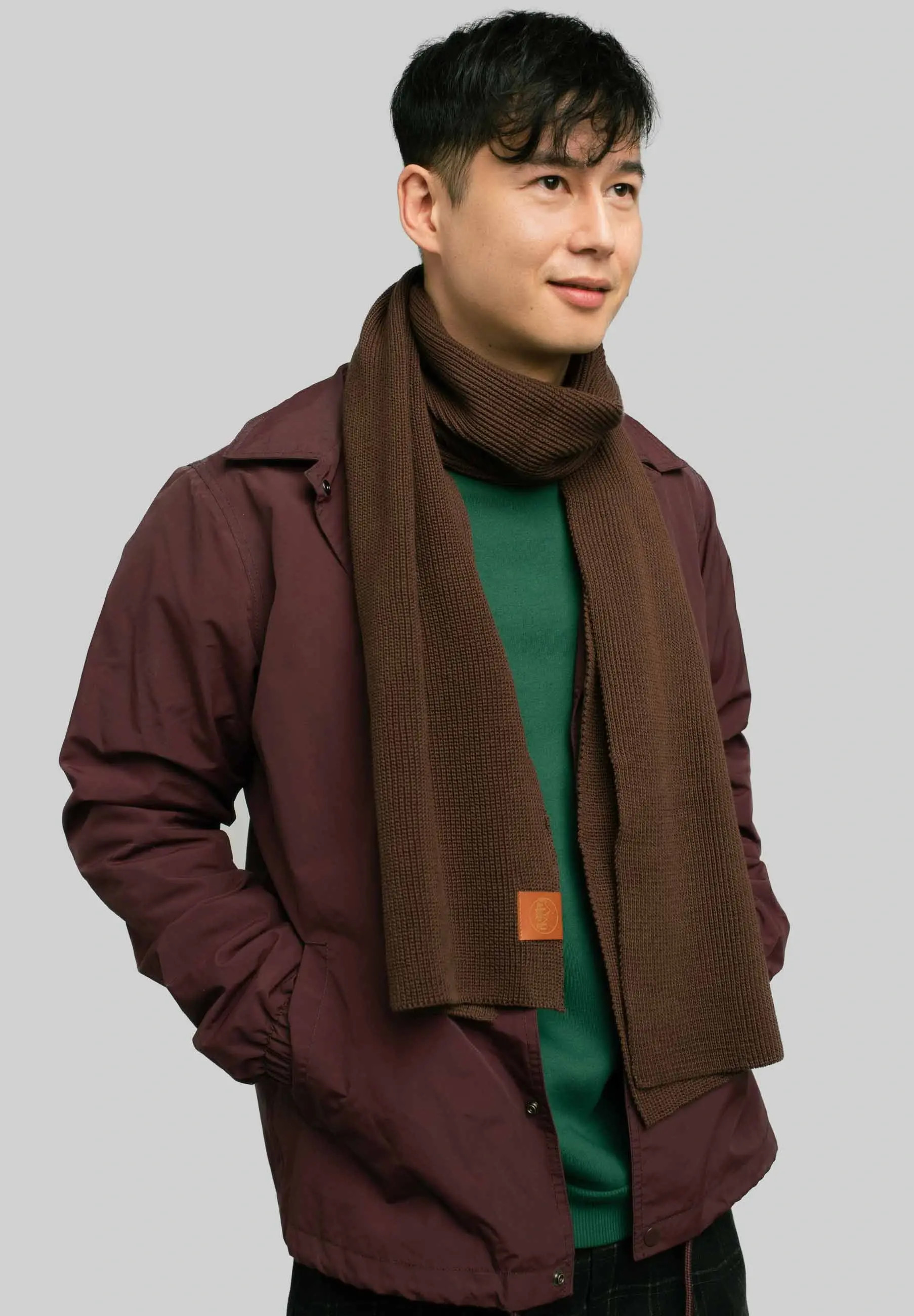 Szalik gładki z bawełny organicznej brązowy