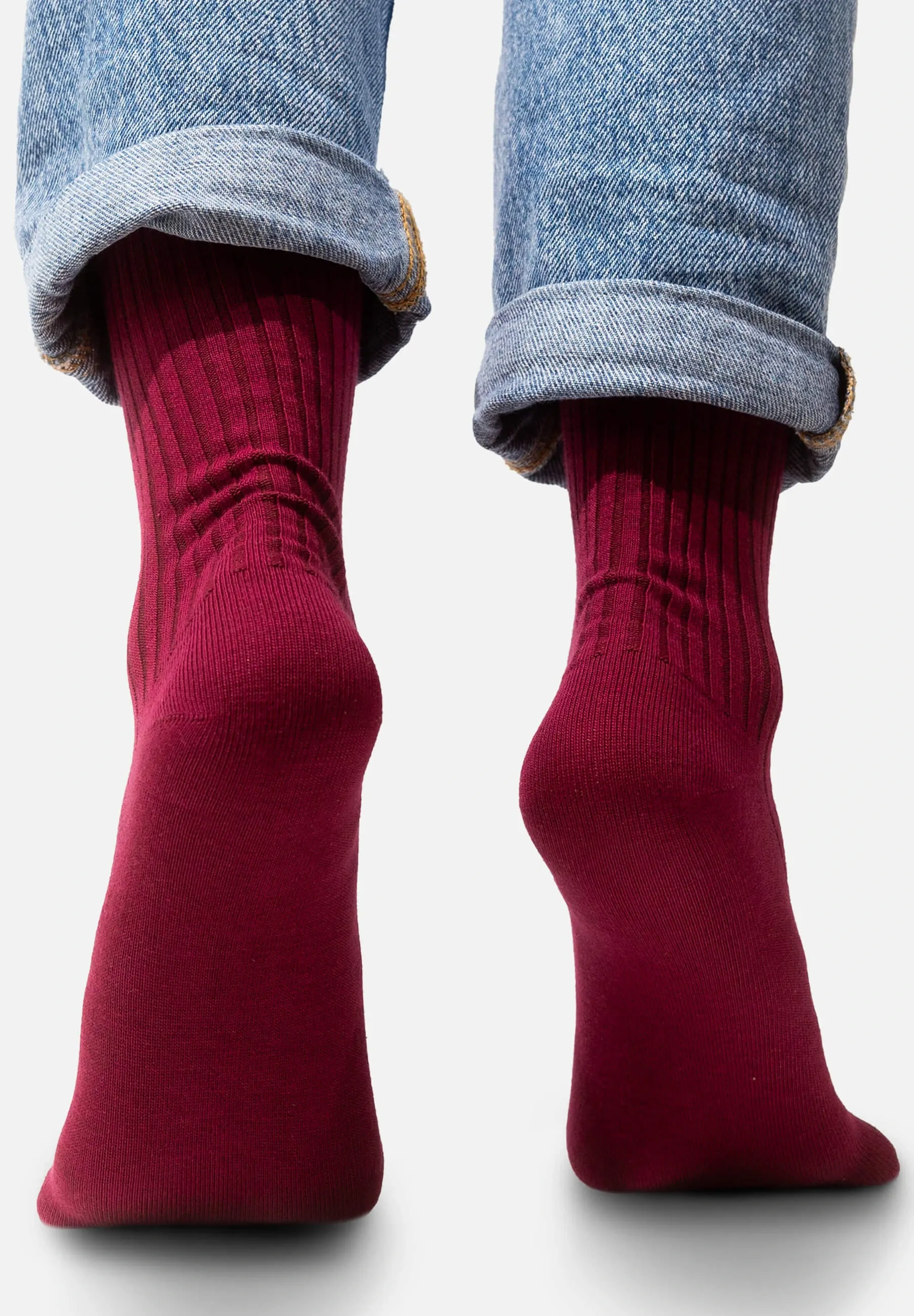 Zestaw skarpetek bordowych z bawełny organicznej w szeroki prążek