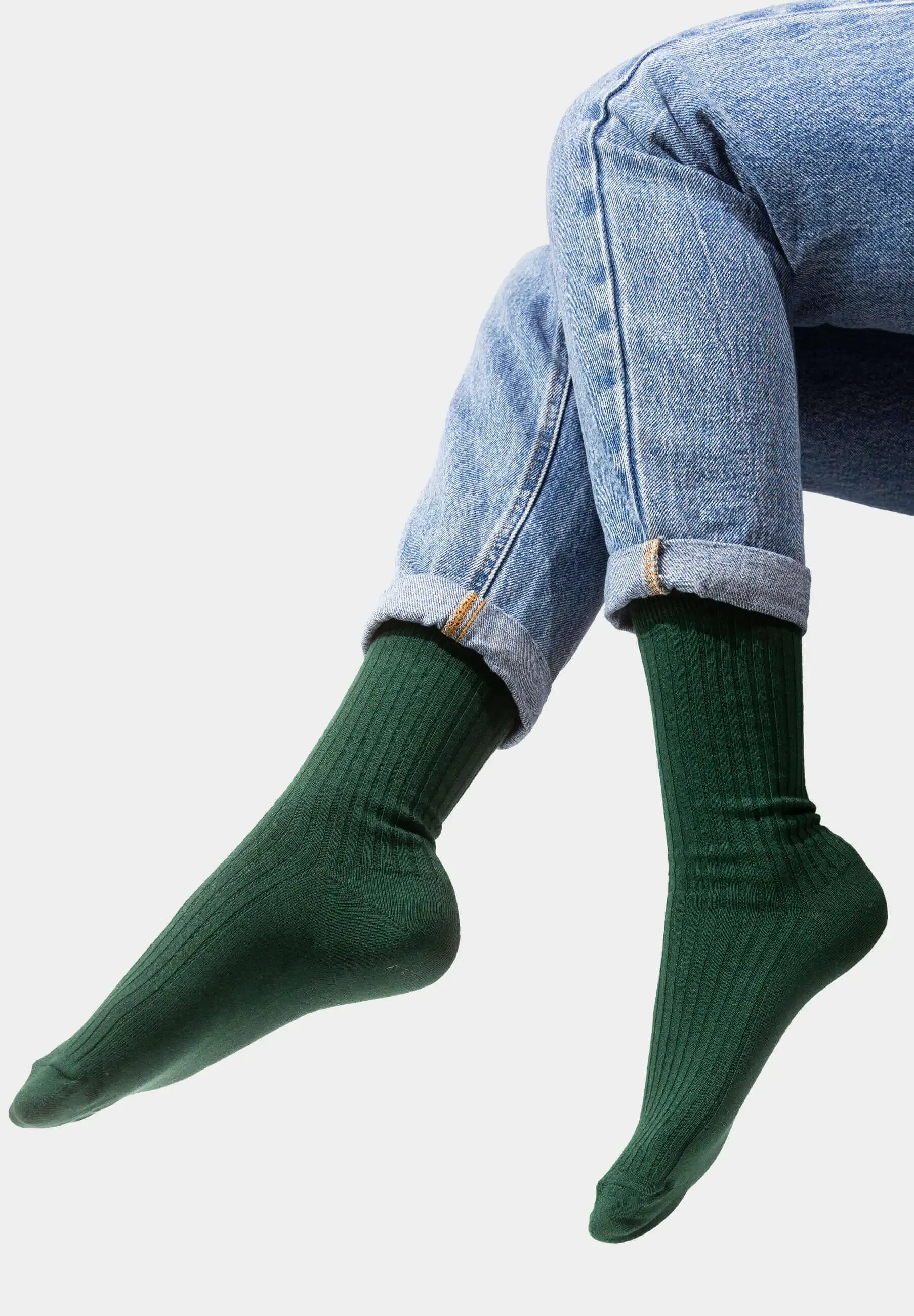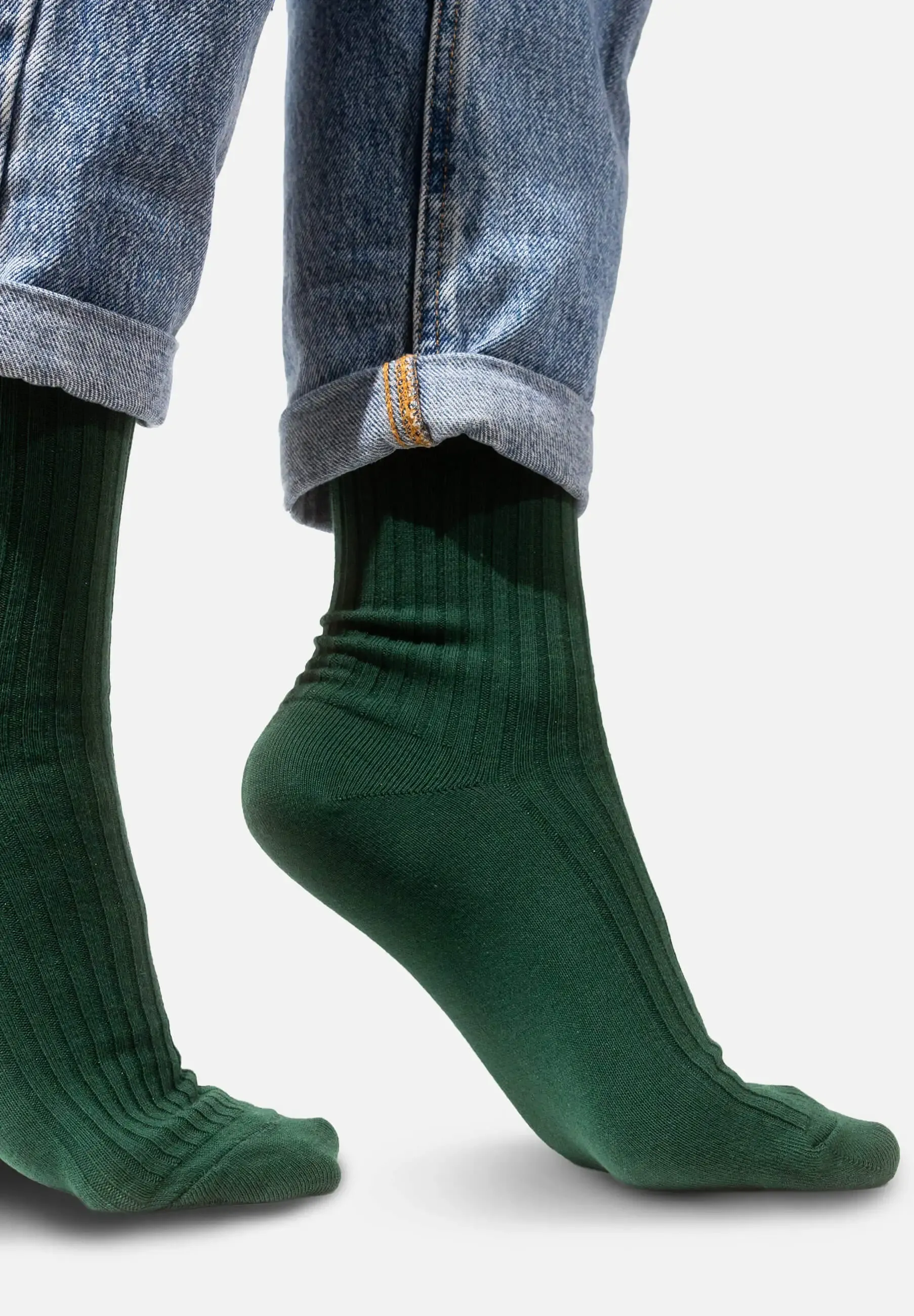 Zestaw skarpetek butelkowa zieleń z bawełny organicznej w szeroki prążek