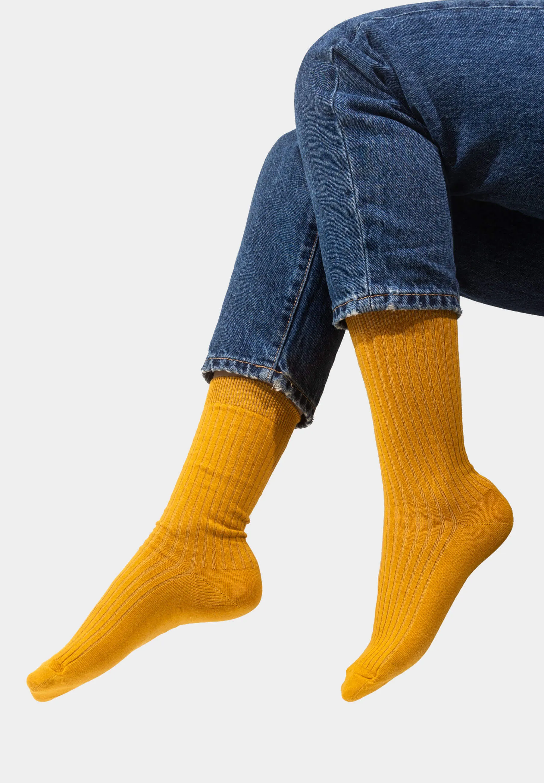 Zestaw skarpetek musztardowych z bawełny organicznej w szeroki prążek